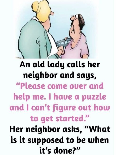 Her neighbor asks, “What is it supposed to be when it’s done?” The little silver-haired lady says, “According to the picture on the box, it’s