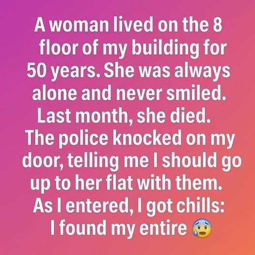 For fifty years, she lived quietly on the eighth floor of our building. She rarely spoke, never smiled, and kept entirely to herself. People came