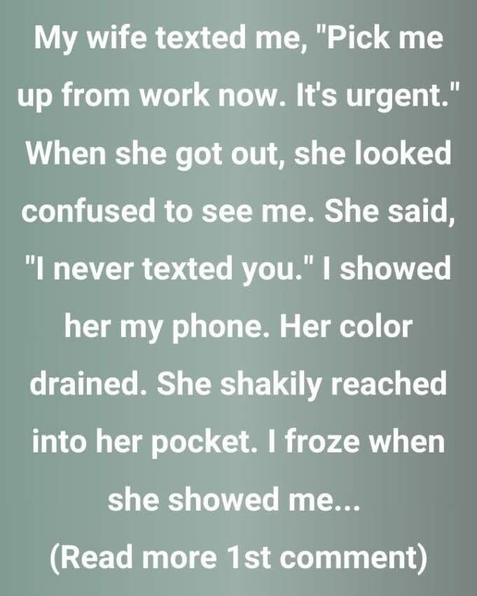 My wife texted me, “Pick me up from work now. It’s urgent.” When she got out, she looked confused to see me. She said, “I
