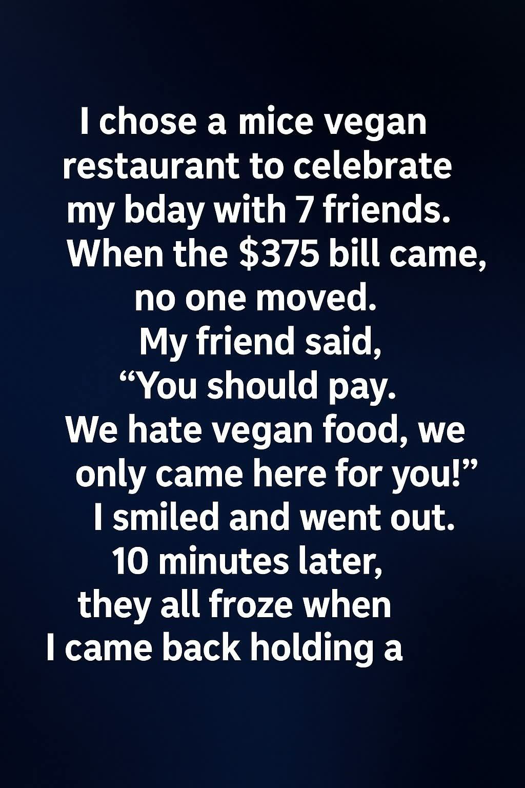 Home The Silent Lesson I Taught at My Birthday Dinner I chose a nice vegan restaurant to celebrate my birthday with seven friends. The place