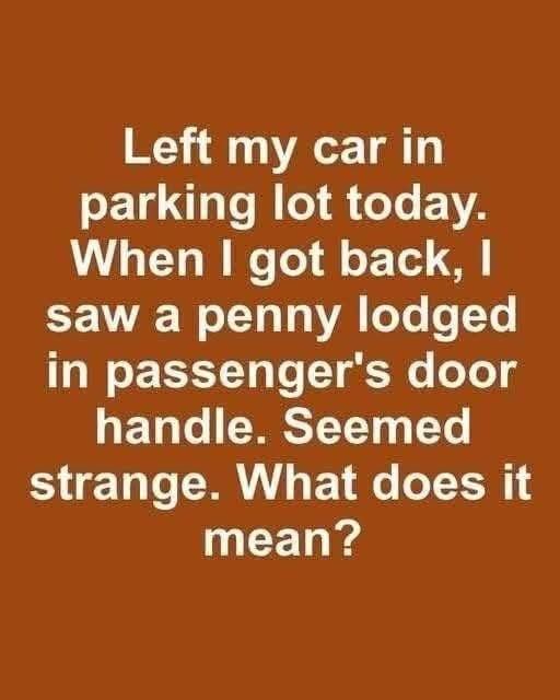 You walk back to your car in a parking lot and notice something odd: a penny wedged tightly into the passenger-side door handle. At first,
