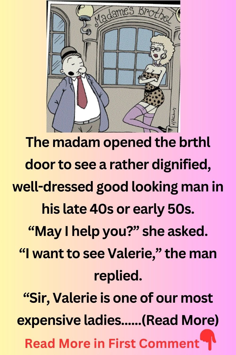 The madam opened the brthl door to see a rather dignified, well-dressed good looking man in his late 40s or early 50s. “May I help