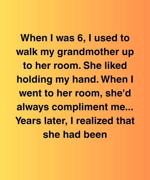 When I was 6, I used to walk my grandmother up to her room. She liked holding my hand. When I went to her room,