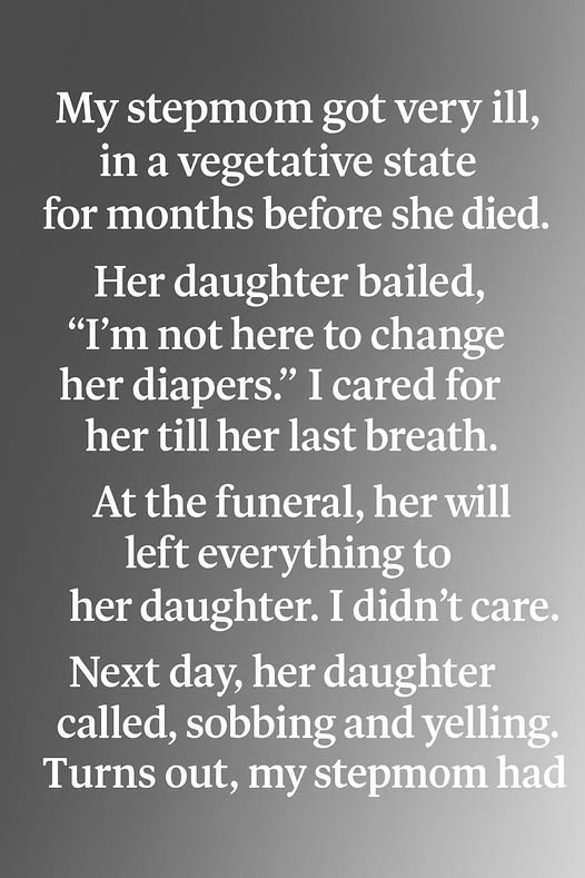 What I expected after my stepmom’s funeral was quiet—grief settling like dust, the slow unwinding of months spent in hospital rooms, and the strange stillness