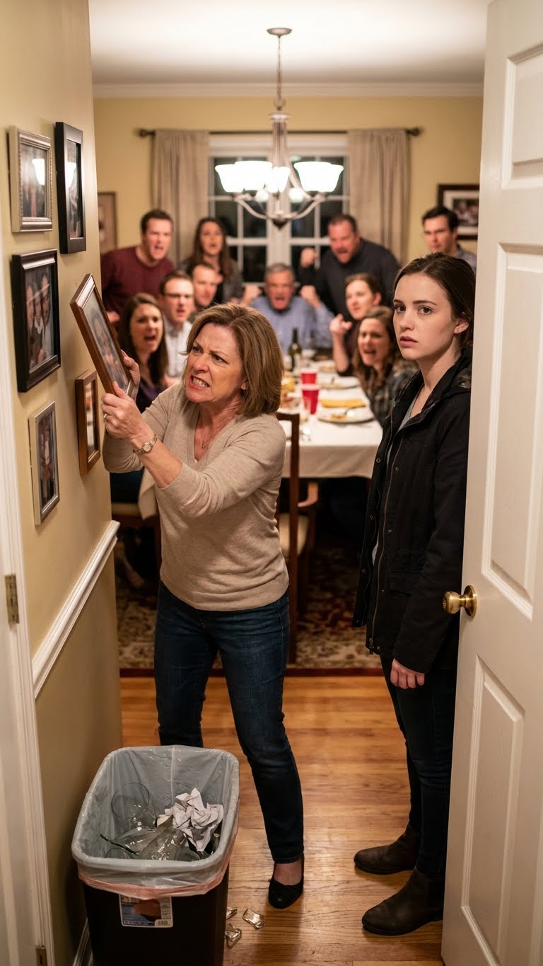 My mom organized a family dinner with 33 relatives, and I was ignored like an outsider. She suddenly stood up, ripped my photos off the wall, and threw them into the trash, shouting, “You leech! You’ve sucked this family dry!” My dad backed her up, yelling, “Pay back everything we spent raising you—what a waste!” My sister sneered and shoved me out the door while the whole family hurled insults at me. I said nothing. I just walked away. One week later: Dad (5:00 a.m.): 50 messages. Sister (7:00 a.m.): 20 missed calls. Mom (10:00 a.m.): “Please… give us one chance.”
