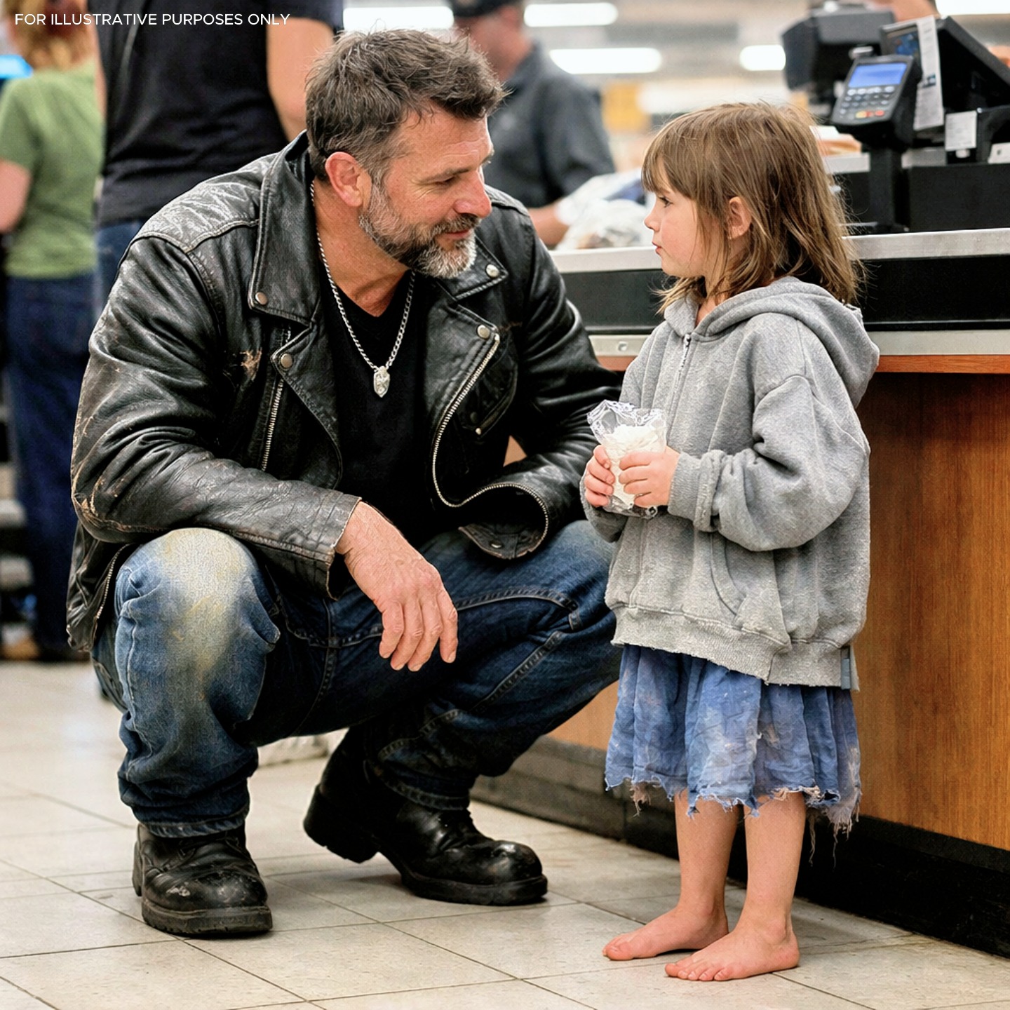 No one noticed her at first. That was the cruelest part. She stood near the bottom shelf of the rice aisle, barefoot, her toes curling