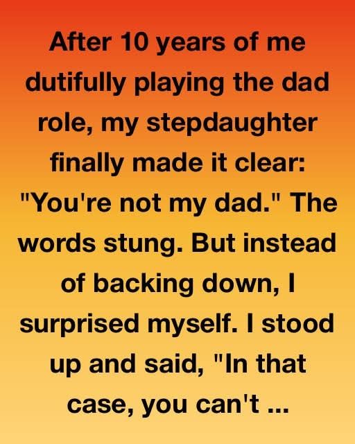 The words didn’t spark anger. They hollowed me out. Ten years of scraped knees, late-night fevers, bike lessons, school plays, and heartbreaks—and still, in her eyes, I wasn’t “Dad.” Just “Mike.”