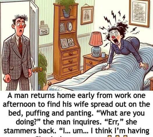 A man’s surprise return home from work turned into a chaotic and comical scene. He found his wife sprawled on the bed, gasping for breath, and she claimed to be having a heart attack. The concerned husband rushed to call an ambulance, but his plans were interrupted by his distraught son, Johnny.
