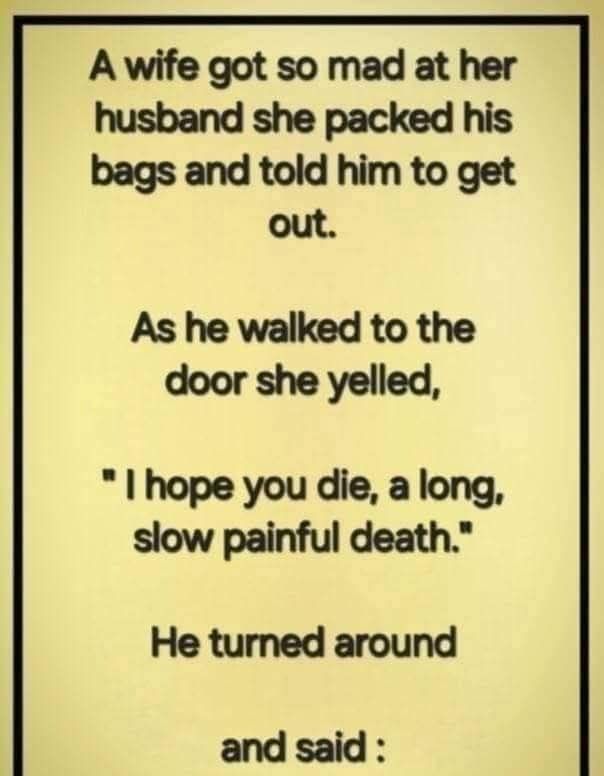 A wife got so mad at her husband she packed his bags and told him to get out.