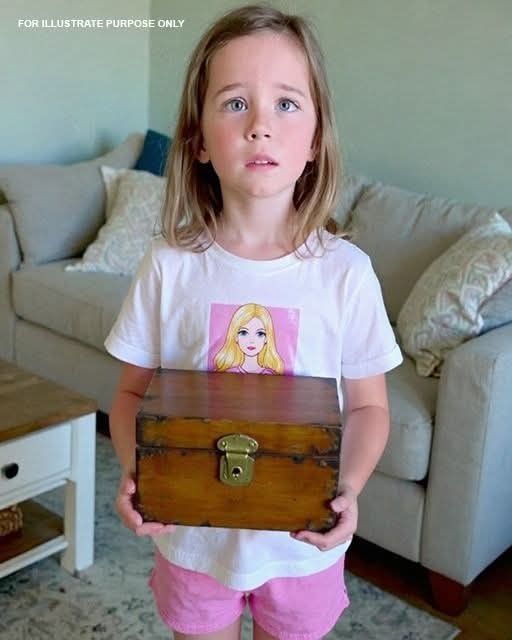 Her footsteps pattered against the tile as she carried something clutched tightly in her hands. She entered the kitchen with wide eyes, cheeks flushed with excitement, holding a small wooden box that looked older than both of us combined.