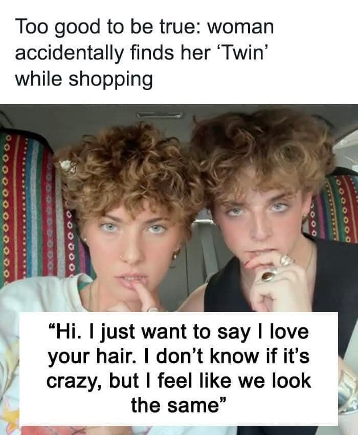 Hello. “I would like to express my admiration for your hair,” the woman commenced the discussion. She continued, “I don’t know if it’s crazy, but I feel like we look the same.”