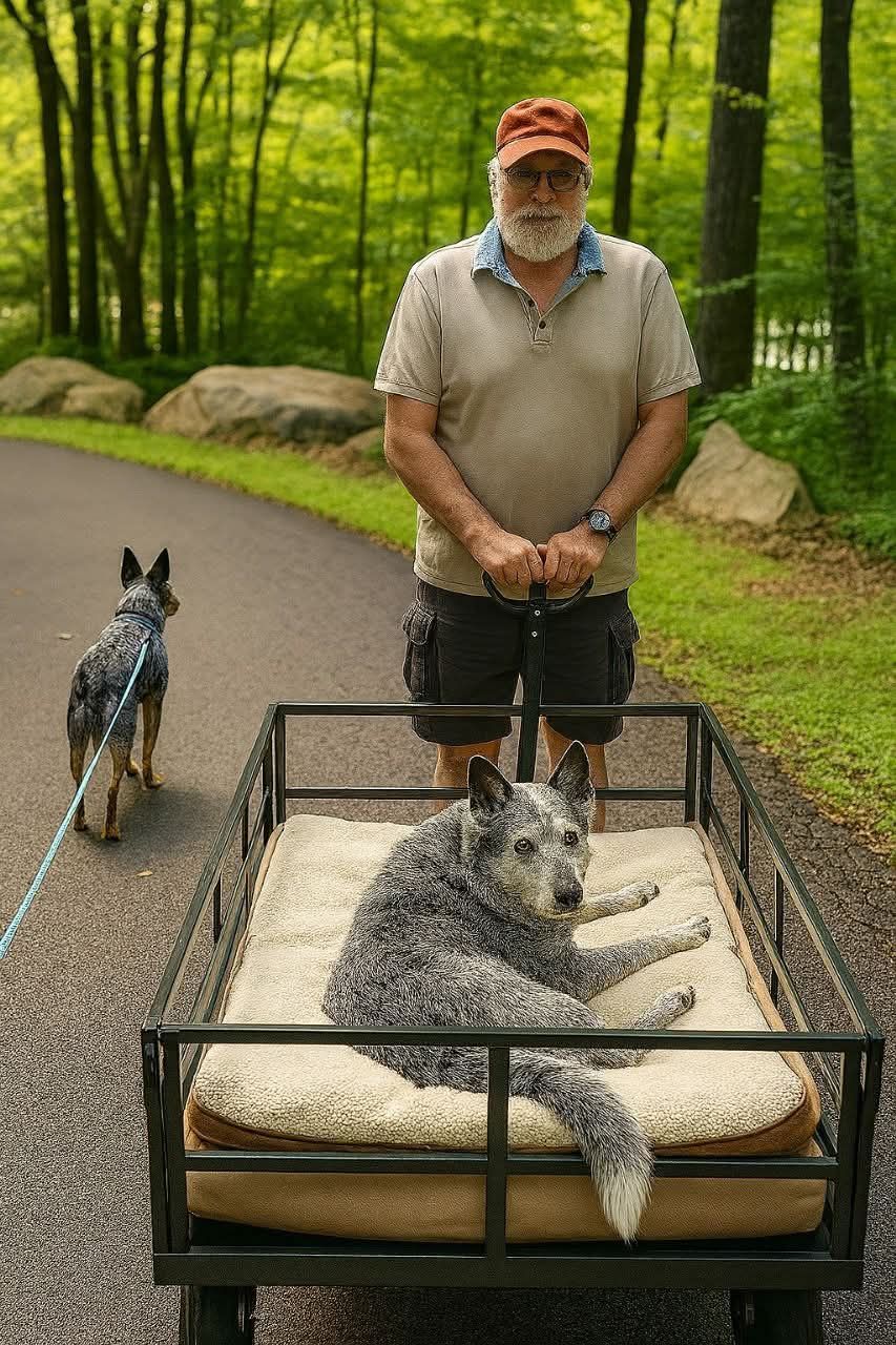 It was my regular jog along the park pathway, headphones engaged, thoughts meandering. At that point, I observed him—an elderly gentleman with an extended white beard, pulling a small conveyance behind him. Within it rested a canine—gray-faced, rigid, exhibiting minimal movement. Another, younger dog ambled alongside them.