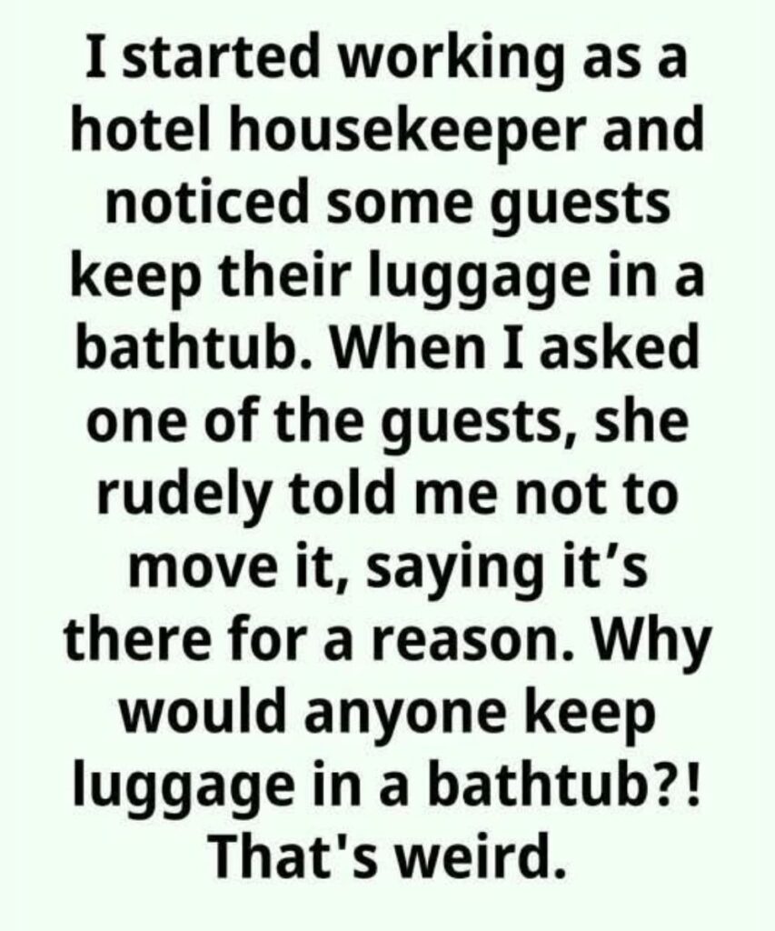 Aside from bedbugs and cleanliness, there’s another reason why putting your luggage in the bathtub makes sense: it’s a safe spot. Hotel rooms can sometimes have unpredicted foot traffic, from housekeeping staff to maintenance workers, and even if they don’t, accidents occur.