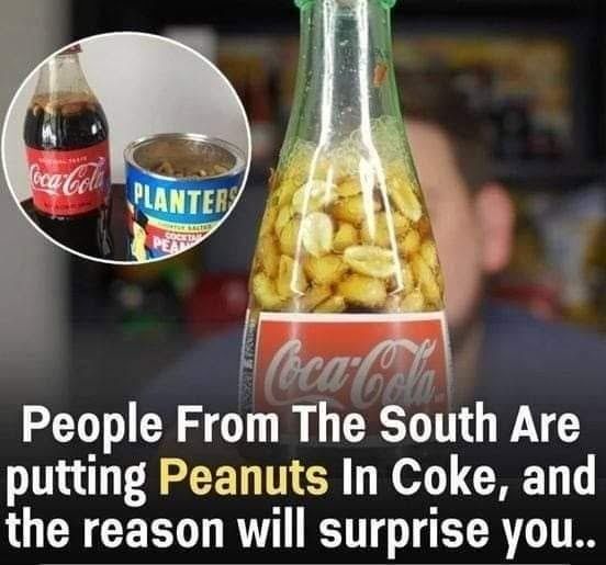 Then, for convenience, these workers started putting their peanuts in their bottle of coke and ate it this way.
