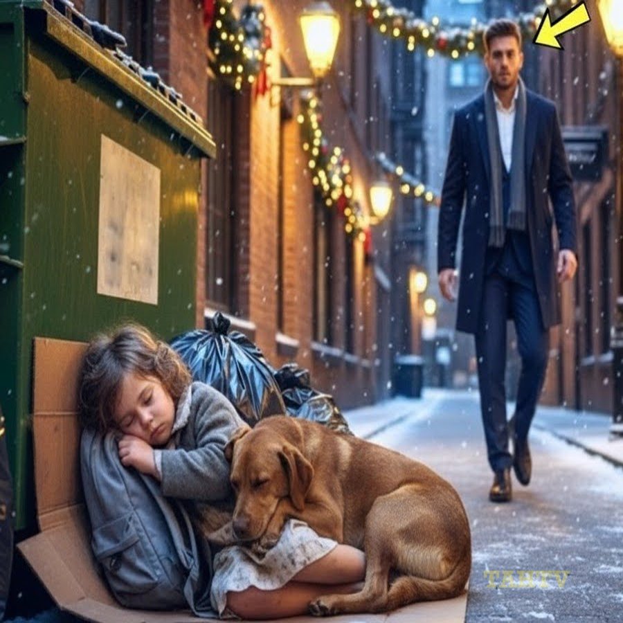 Please don’t take my dog. He’s all I have. I’m not here to take him. Single dad CEO found a little girl and her dog sleeping on trash on Christmas Eve. The truth left him stunned. Snow fell hard that Christmas Eve, covering New York’s cold streets in white silence. But in the alley behind an expensive restaurant beside piles of torn boxes and trash, a little girl was asleep, curled up on the frozen ground, clutching a shivering brown dog to her chest.