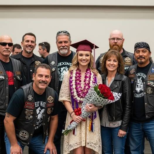 Emma froze on stage. The dean looked confused, unsure whether to call for security or wait. The biker’s voice softened. “We’re not here for trouble,” he said. “We came for her. We have a debt to pay.”