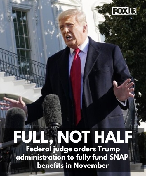 A federal judge in Rhode Island ordered the Trump administration Thursday to find the money to fully fund SNAP benefits for November.