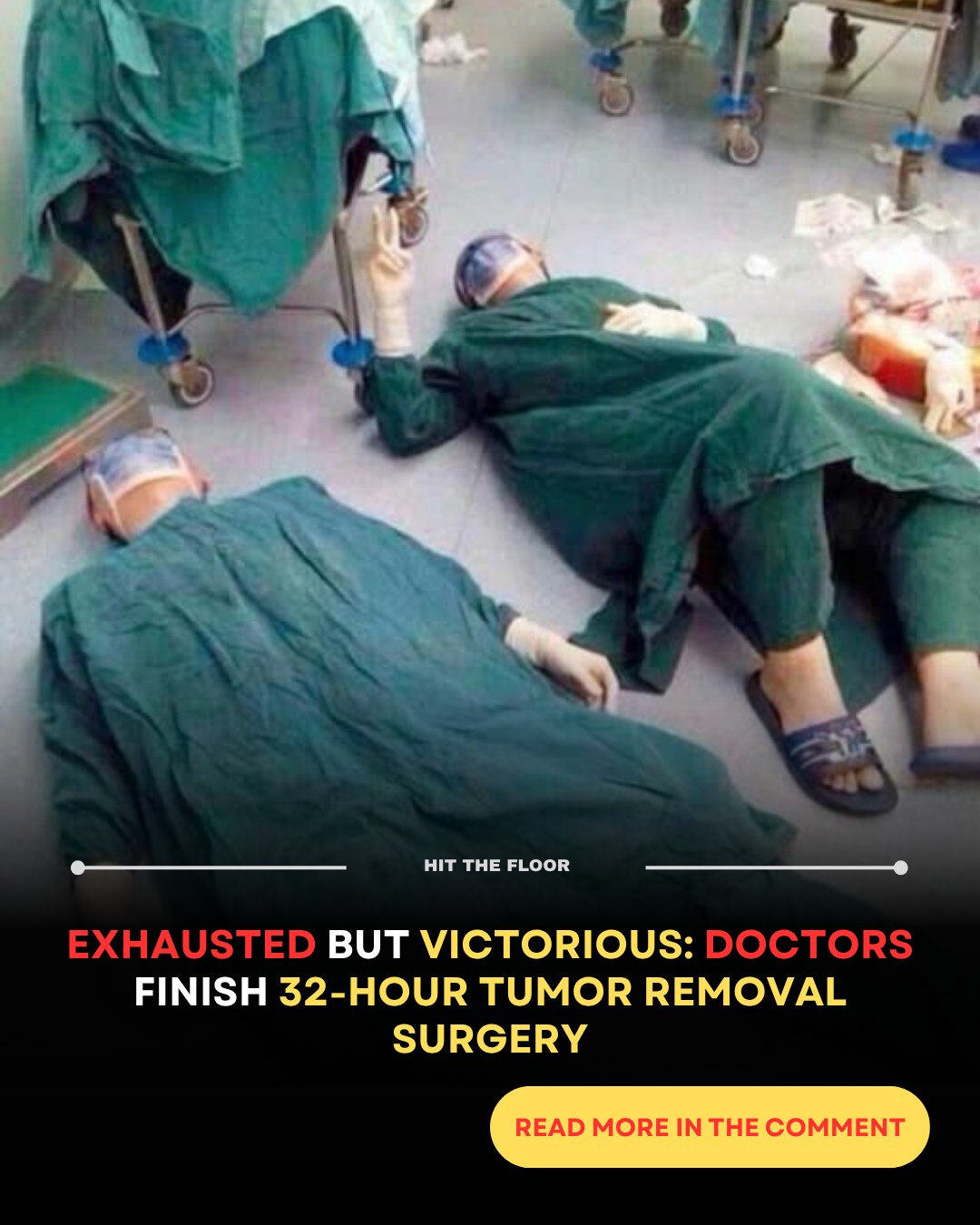 When the surgery finally ended successfully, the three surgeons walked out, then collapsed on the ground from exhaustion. A photo of them lying side by side quickly went viral across Chinese social media platforms.