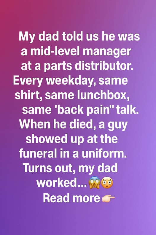 My dad lived his life in a way that made it easy to overlook the truth. Every morning, he left the house wearing the same button-down shirt, carrying the same dented lunchbox, offering the same small groans about his “back acting up again.” He told us he worked as a mid-level manager at a parts distribution company—nothing glamorous, nothing dramatic, just steady. He never brought home paperwork, never talked shop, never bragged. It all seemed normal. Predictable. Ordinary. And we believed every word of it.