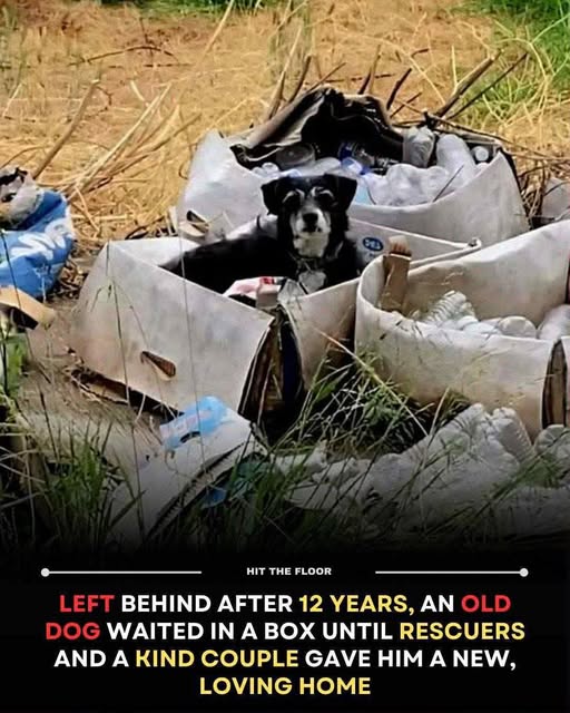 The next morning, a passerby noticed the old dog sitting in that box: head low, eyes filled with a sadness too heavy for words. When she approached, he didn’t bark or run. He simply looked up, as if asking: “Are you here for me?”