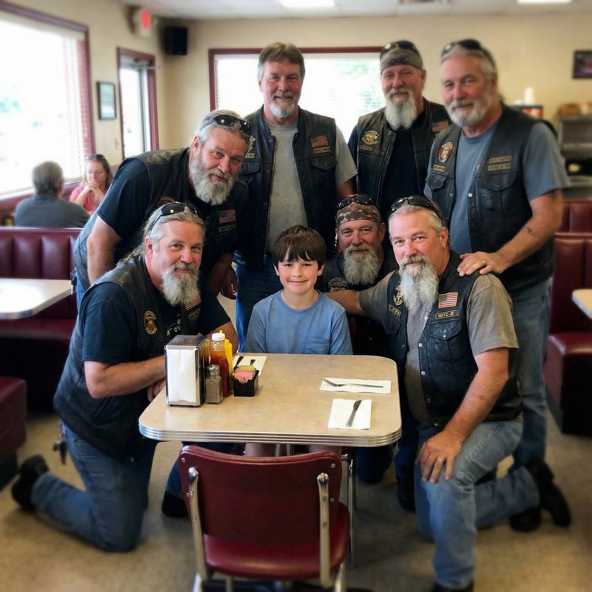 That Saturday, we were three hours into a drive to my mother’s house when Marcus begged for food and a bathroom break. Rosie’s Diner sat off Highway 12, a neon sign buzzing above fifteen parked motorcycles. A swarm of leather, boots, and beards. I almost kept driving, but Marcus practically squirmed out of his seat.