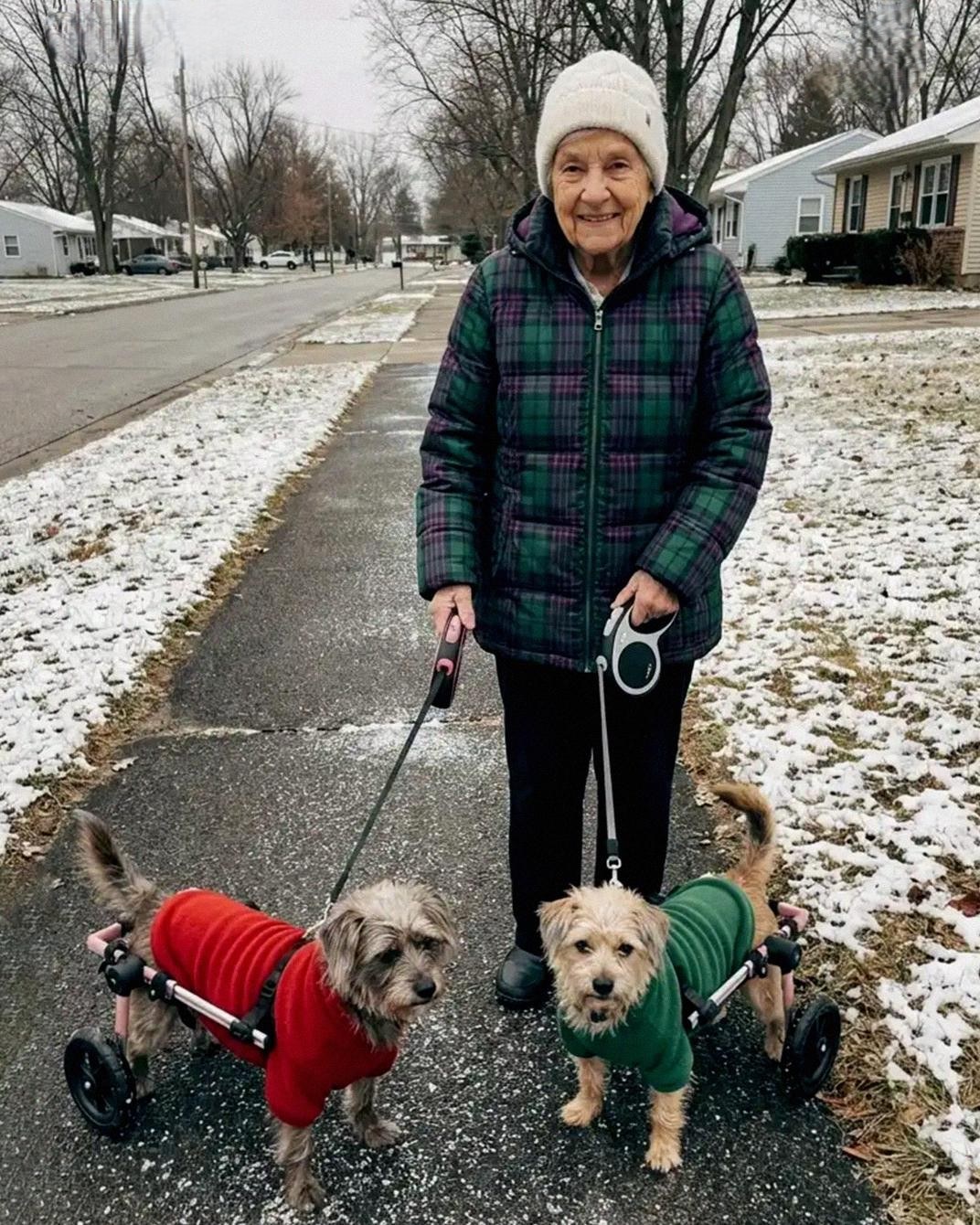 Last Tuesday began like any other. Warm air, soft sunlight, the street half in shadow. Pearl rolled ahead, investigating every mailbox as if each one held a secret just for her. Buddy stayed close to my ankle, his wheels bumping gently against the curb.