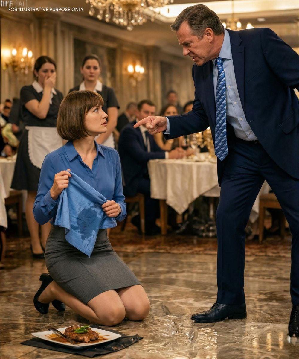 The Wagyu steak lay on the ground, its red reduction spreading across the white marble like a stain no one wanted to acknowledge. The shattered plate glittered under the chandelier light.