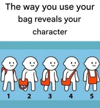 3. Over your shoulder: People who like to carry their bag over their shoulder usually also like to read. This position allows them to pull their favorite book out of their bag in the blink of an eye. They are generally very thoughtful and are likely to fall asleep in front of you during a monologue you’re having together.