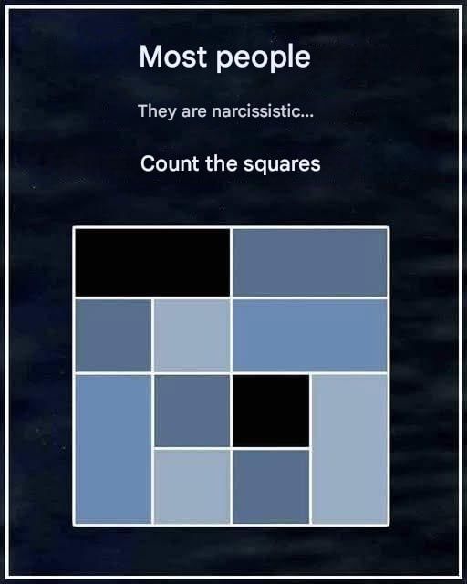 Narcissists tend to consider themselves infallible and often reject other viewpoints. When asked to count squares, some confidently give a quick answer without checking their results. This hasty judgment reflects a typical characteristic of narcissism: an excessive overestimation of one’s own abilities and insights.