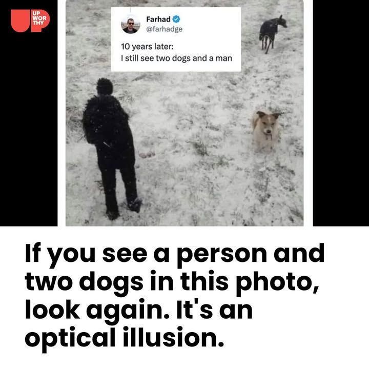 One person wrote, “10 years later: I still see two dogs and a man.”