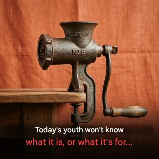 This small metal box with a crank was once very common in kitchens. It’s a manual meat grinder. You placed the food inside, then turned the crank to chop it finely. It was the ancestor of many modern kitchen appliances.