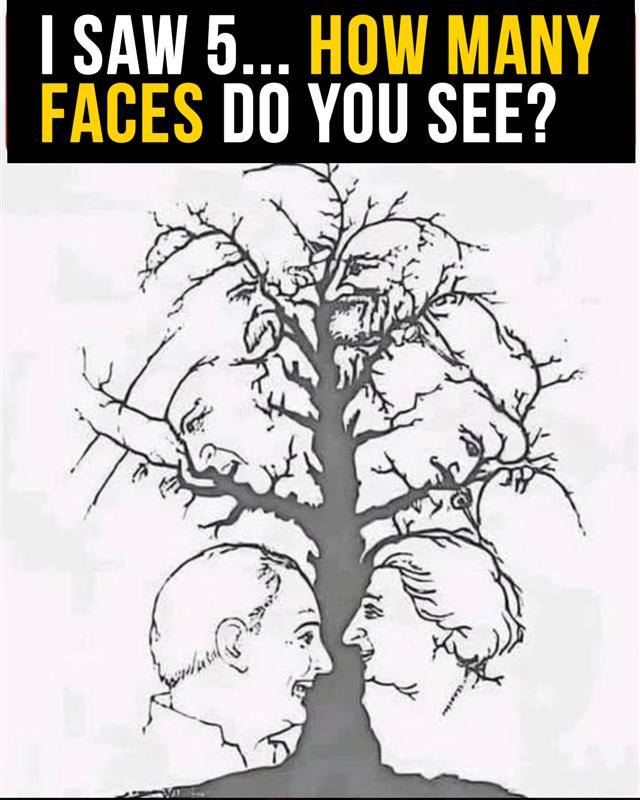 As mentioned earlier, the two faces located at the bottom of the tree are visible to everyone. However, if you can only identify one or two extra faces, it might suggest that you have a memory issue.